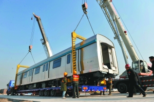(北京市)首批地鐵4號線新車昨日進入馬家堡車輛段,為明年2月開始的冷熱滑試驗做準備。初定明年9月底,4號線正式通車運營。