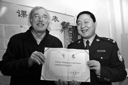 “非常感謝周口出入境管理部門的警官對我的信任,我一定認真履行好自己的職責!鼻叭,當周口師范學院美籍英語教師羅納爾德-科爾騰巴赫從周口市公安局出入境管理科副科長何配韋手中接過“廉政建設特邀監督員證書”時用漢語表示。