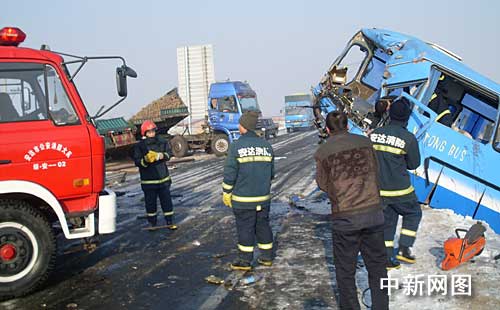 事故發(fā)生后,安達市消防大隊的消防官兵、120醫(yī)護人員立即趕到現(xiàn)場參加救援。據(jù)現(xiàn)場救援人員介紹,兩車都滑入路旁的深溝中,客車駕駛室嚴重變形,駕駛員被困車內(nèi),消防官兵趕到現(xiàn)場將被困人員救出。記者從安達市人民醫(yī)院了解到,該院目前收到事故中9名傷者入院治療。