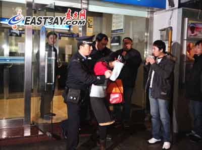 記者在現場看到,該女子看上去三十多歲,臉色有些發暗。當無人靠近時,她便面對ATM機默不作聲,而一旦有人接近試圖和她說話,她便又開口大罵起來。3位民警陸續趕到,對女子進行了勸說。當晚6時,女子終于戴好手套拿起包和塑料袋開門走出,并被民警帶上警車。令在場人員感到不解的是,女子在上車前一掃之前的憤怒,竟咧開嘴笑了。