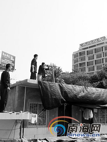 記者看見,兩名民警挎著狙擊槍走上山腳下一間民房房頂,這里能看到山坡上的水牛,選好最佳射擊位置后,一名民警把狙擊槍架在木板上準備射擊,這樣能增強射擊精確度。