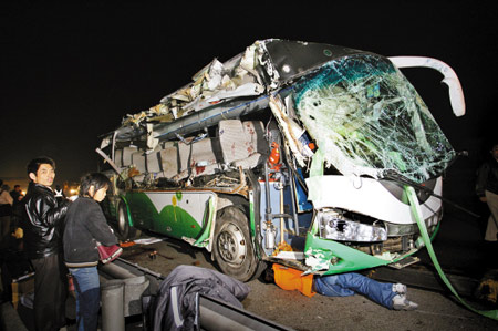 乘客張小姐,事發時坐在車廂左側第三排,“當時我睡得迷迷糊糊,忽然間車身劇烈搖晃,還聽到巨大的撞擊聲,等清醒過來時已發現整個車身右側都沒了,好多人頭破血流,太慘了!”大客車副駕駛董師傅回憶起當時的情形也是心有余悸,“我反應稍慢一點的話就沒命了。”當時董師傅坐在大客車右前方的乘務員位置,“我在想事情,忽然發現前方有車時,一切都來不及了,于是趕忙起身往后跑,才躲過一劫。”