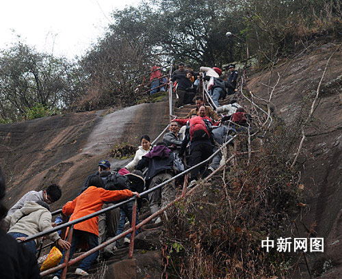 記者在登山的時候,發現了一撥來自四川災區的同胞們也趕至丹霞山慶新年。他們是曾氏家族、四世同堂30多人浩浩蕩蕩地開著五部車從成都慕名來到丹霞山,他們在這雄偉壯觀的丹霞美景的面前,也許下了對四川、對祖國的美好新年祝愿:“丹霞最美、丹霞最牛、四川雄起、祖國昌盛”!
