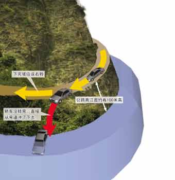 冉某說,出事的地方位于忠縣縣城2公里處,是一條村級土路的長下坡,下完坡后本應該右轉,但轎車沒有轉彎,而是直接從彎道沖了下去。“公路離江面約有100米高,打撈出來的轎車車門是打開的。”冉某說,由于轎車墜江的地方是懸崖,兩人應該先是跳出轎車,最終男子掉進了江里,而其侄女則滾到了江邊。