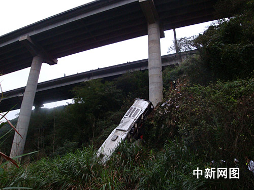 據韶關市交警部門通報,二月二十八日上午,河南省鄭州市一輛掛豫R三八五二二號牌的雙層臥鋪大客車,從河南省南陽市搭載乘客四十三人前往東莞,三月一日凌晨三時四十六分,途經京珠高速公路粵北段南行七十九公里+二百米處時,遇見前方路面情況,采取制動及避讓措施時,碰撞左側約零點六米高護欄后,沖出高架路外,掉下約五十米深山溝,所幸在半坡處被巨大的橋柱擋了一下,才未跌落谷底。