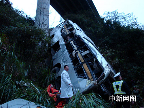 中新網韶關3月1日電 (馮昶 李凌 陳孔勇 陳玉升)三月一日凌晨三時四十六分,京珠高速公路廣東韶關段乳源境內段發生一宗大客車沖出護欄,摔下山崖,造成四人死亡、五人重傷、三十四人輕傷的特大交通事故。