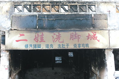 昨日,記者在九坑子農貿市場中找到了這家“最牛洗腳城”,由于該地段即將拆遷,該店鋪內早已空無一人,但“二娃洗腳城”的招牌依然高掛在這家僅10平米大小的店門前,在這片凌亂的地方,顯得十分醒目。