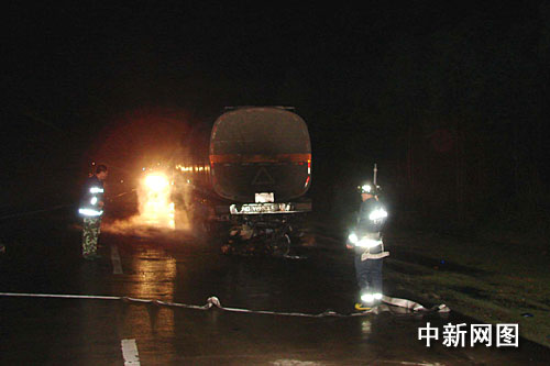 中新網(wǎng)欽州3月6日電 (田華松 王剛)3月6日凌晨,廣西欽州市欽州至陸川公路一輛摩托車撞向油罐車并引發(fā)大火,摩托車手不幸在大火中喪生,由姿勢(shì)可見死前非常痛苦。