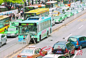 昨日(7)中午12時許,在廣州天河區崗頂公交車站前等車的趙先生目睹了電影中才會發生的一幕:一輛298路公交車猛地沖向馬路中間的護欄,滑行了近30米后才停下來。強大的沖擊力將十余個鐵制護欄連根鏟起。車上當時載有四五十名乘客,但只有司機受傷。據了解,該事故的起因竟是區區6元的車資找零。