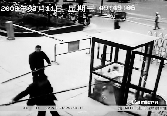 這一來,保安的戒備心終于放下了,還跟記者聊起了天。“你來晚了,剛剛打得太精彩了,我本來想用手機拍下來的,沒來得及。”“他們(指業(yè)主)太兇了,手持一米多長的三角鐵。不說了,太可怕啦!”