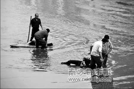 守在河涌旁的還有吳松濤的幾名同伴。其中一位同伴阿勇(化名)說,凌晨1時15分許,包括阿濱、吳松濤在內一共9人,在朋友生日宴會后喝完酒,經過烏涌河旁休息。談話間,阿濱與其中一人賭氣,突然跳下河涌。“當時大家都喝了不少,現在都不記得為何賭氣了。”