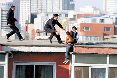 后來,我就趁撿衣服的工夫,看她沒有防備,就動手抓住了她。當時她的大半個身體都懸在了樓外,我只能用腳死死地抵住樓頂,后背都被硌破了,鞋跟也磨禿了。