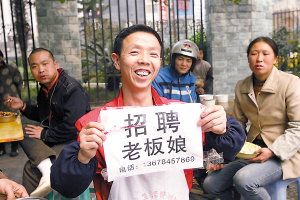 “是真的,想找個(gè)伴,一起做生意。她當(dāng)老板娘,只管收錢哈,我愿意給她打工!睏钪覀ピ趪股喜亮瞬潦终f,他的招聘廣告其實(shí)就是征婚廣告。