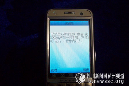 3月31日下午4點40分,瀘州市江陽區北城派出所接到群眾報警稱,一家商行女老板遭遇一個帶內江口音的男子恐嚇:“3000元買你一只手臂,等你的手臂不動了,你就知道我是誰了。”目前,警方已介入調查。是為情所困,還是因財生異,亦或另有隱情?