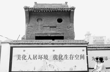 工地一位負責人講,考慮到這座門牌樓已經有上百年的歷史,就沒有隨著城中村改造整體拆除,暫時保護起來。“‘囧’?我還沒發現,難怪有很多人來這里轉悠。”他說,最近很多年輕人來看這座門牌樓,還有好多人拿著相機拍照。(文/圖 記者 李卓洋)
