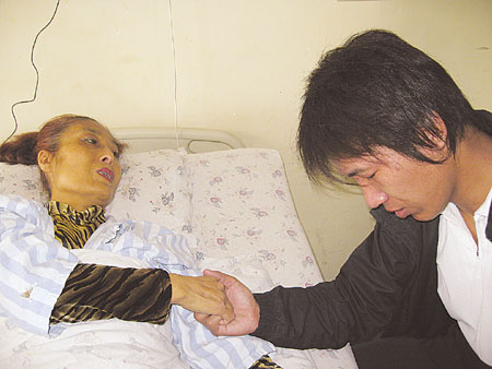其實,早在2006年,在母親患病中期,兒子常津銘就從網(wǎng)上查到關于肝臟移植手術的資料,但沒想到母親的病真的發(fā)展到這一步。當看著往日的漂亮媽媽皮膚黑黃,人也越發(fā)消瘦,兒子的心里難受極了。他安慰母親:“老媽,你放心,需要換肝我一定給你。”當時,媽媽愣住了:“兒啊,你胡說什么,媽都這么大年紀了,你以后的路還長著呢!”“不行,老媽,我能救你而不救,我會遺憾一輩子的!”