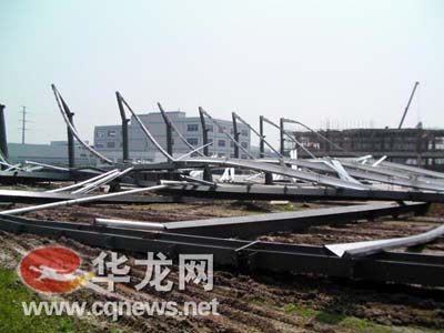 記者在現(xiàn)場看到,鋼架大約高10米左右,整個房屋鋼架已經(jīng)全部垮塌,鋼架橫七豎八地散落在工地上,工地上的一輛工程車被落下的鋼架翻了個底朝天。據(jù)現(xiàn)場一位工人介紹,14日上午10時40分左右,他正在對面的在建廠房上做木工,突然聽到“轟”的一聲,“當時我就只看到廠房的鋼架全部垮了下來,幸好當時沒有好多人在房子上施工喲!”該工人告訴記者,當時只有2名工人正在鋼架屋頂上施工,鋼架垮塌后,該2名工人受傷,后被及時送往了醫(yī)院。