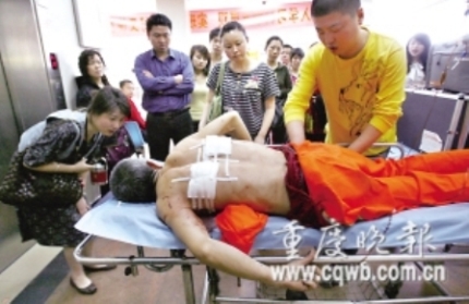 昨日下午5點(diǎn),環(huán)衛(wèi)工魏泉茂被送到市急救中心搶救。他背部雙側(cè)被砍傷,最深處為5厘米,肩胛骨被砍斷,幸無(wú)生命危險(xiǎn)。據(jù)魏泉茂說(shuō),當(dāng)時(shí)他在凱旋路附近做清潔,一輛灰色轎車(chē)欲停在他正在清理垃圾的地方。魏泉茂表示,等清掃干凈了再讓開(kāi)。雙方爭(zhēng)吵起來(lái)。隨后,魏泉茂推著垃圾車(chē)來(lái)到了儲(chǔ)奇門(mén)垃圾站對(duì)面。一名男子突然持刀沖向他,一來(lái)就是兩刀。隨后,男子招下一輛出租車(chē)逃跑。魏泉茂說(shuō),砍他的人就是與自己爭(zhēng)吵的那名司機(jī)。目前,儲(chǔ)奇門(mén)派出所正在調(diào)查此案。(朱雋 龍珊)