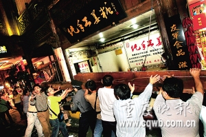 昨晚8時16分許,洪崖洞傳統風貌區四樓天成巷438號至440號之間一長8.27米、寬1.1米的商鋪飛檐及附屬物發生垮塌,砸傷5人,其中傷勢較重者1人。
