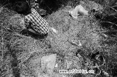 昨日下午,蔣某雨等4人帶記者來到事發地點。記者發現,此處距最近的工廠約700多米,馬路上車來車往,但很少有行人經過。馬路邊坡下的草叢約一米多高,從坡上很難發現藏在草叢中的人。幾只鞋和一條皮帶散落在草叢中,蔣某雨說,還有些鞋和褲子被警察拿走了。