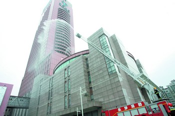 荷花園電信大樓高218米,共有地面建筑42層,是典型的超高層建筑。在昨日的演練中,最引人矚目的是高層供水加壓項目。“在高層建筑火災中,當消防戰士進入火場時,難免會遇到室內消火栓斷水的情況,這就要求我們必須有備用方案。”市消防支隊參謀長葛佳軍告訴記者,此次演練的主要內容之一就是高空加壓。此次假設的起火點位于39層,在消防車的轟鳴聲中,水帶迅速充足,一條白色的水龍沖天而起。“目前,我們的高空加壓垂直高度可達到280米左右。”葛佳軍說。(記者 千靈坡)