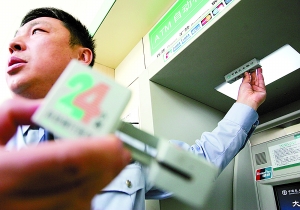 昨天上午,朝陽公安分局內(nèi)保處王警官介紹,4月28日20時30分,市民張女士在位于亞運村附近的一家中國農(nóng)業(yè)銀行支行某分理處自助銀行辦理取款業(yè)務(wù),發(fā)現(xiàn)三臺提款機僅有一臺可用,另外兩臺的屏幕都被A4紙貼上,寫著“本機正在升級中,請見諒”,當(dāng)張女士打算在唯一能用的機器上取款時看到,這臺機器上方多了一個方形盒子,下方的插卡口處套了一個標(biāo)有“24小時自助銀行服務(wù)”的卡槽,張女士覺得可疑,立即向銀行和公安機關(guān)報警。