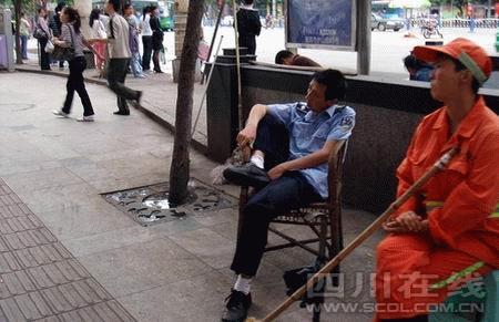 昨日,照片里的主角,宜賓市翠屏區(qū)市容管理局南城中隊(duì)協(xié)管員李劍勇表示,單位領(lǐng)導(dǎo)已批評(píng)教育他了,自己影響了宜賓和宜賓城管的形象,他表示非常抱歉。“當(dāng)時(shí)所有的攤點(diǎn)都已規(guī)范位置了,想坐著休息下。”李劍勇說(shuō),城管協(xié)管員沒(méi)有固定工作點(diǎn),他便在游攤最易出現(xiàn)的南門(mén)橋頭坐著休息會(huì)兒,他希望所有的城管隊(duì)員都將他作為反面教材,在以后的工作中注意紀(jì)律和形象。