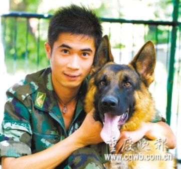 “坐下”、“起”、“定”、“握手”…… 剛走進(jìn)黑盾警犬培訓(xùn)學(xué)校,就看見身穿迷彩服的唐冬正在訓(xùn)練一條小型德國牧羊犬。帥氣的唐冬是學(xué)校里專門訓(xùn)練“高材生”的“大學(xué)教授”,2005年從北京軍區(qū)軍犬基地退役后,做訓(xùn)導(dǎo)師已經(jīng)四年了。如今,24歲的唐冬每月能有3500元左右的薪酬。