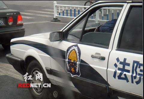 5月20日下午,記者通過帖中所記錄的車牌號,輾轉查到該車屬于江蘇常州市金壇人民法院,通過114,記者再次查到金壇人民法院的電話并拔通了電話,接電話的男子自稱姓翁,負責該法院政工方面的工作,在獲悉記者詢問后,翁先生很友善,稱該車的確是金壇法院的車輛,“其實這車已過了使用年限,早該報廢了,但由于經濟困難一直沒有換新車,我們已向上面申請了,正在等待審批階段。”