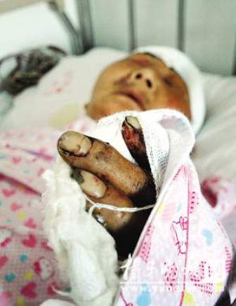 在南京軍區總醫院的一張病床上,記者見到正在輸液的李步琴老人,她頭部、手部纏著厚厚紗布。記者了解到,不連頭上的傷,老人手指、鎖骨、肋骨五處骨折,還餓了4天,老人現在已經恢復了神志,思維敏捷,不能不說是個奇跡。老人告訴記者,5月19日傍晚她和工程隊開挖土機的吵了一架,因為他們挖壞了自己的菜地。當天晚上8點多鐘,突然有個人沖進她居住的泵房,進門就跟她要錢。剛開始她以為遭遇劫匪,無奈之下,只好從口袋里掏出一張皺巴巴的百元鈔票,可對方拿到錢后,仍不罷休,竟然揚言要火燒房子。還不問青紅皂白,甩起一根棍子就朝她頭上夯,她雙手抱住頭,棍棒繼續擊打在她的頭上、身上,直到她昏死過去。老人居住的地方沒有水電,因此當時光線黑暗,她沒有看清楚對方什么樣子,但是她記得對方毆打她的時候曾經問過她:“以后還給不給開路?”這個“開路”是什么意思?老人解釋說,她的菜地占了挖掘機的路,她曾經與對方交涉過多次。