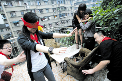 昨天下午三點(diǎn),十八梯,一位穿黑連衣裙的美女站在中間指揮:“我們先去吃飯,待會(huì)集合去老街客棧玩捉迷藏,那里有好多玩具!边@人就是活動(dòng)組織者,上海某廣告公司白領(lǐng)巍薇。巍薇是重慶人,酷愛(ài)游玩,每年兒童節(jié)都會(huì)和朋友們聚會(huì)。她說(shuō),本來(lái)以為這次活動(dòng)在重慶組織不起來(lái),沒(méi)想到在網(wǎng)上報(bào)名的人有214人,電話報(bào)名的有30多個(gè)。由于改了時(shí)間又趕上下雨,最終只來(lái)了十四人。