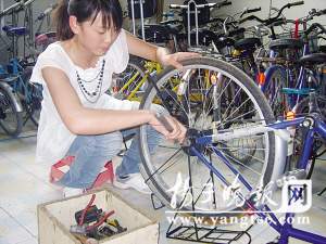 租出去的自行車損壞率一直比較高,小姚又開展了修車服務(wù)。小姚是家里唯一的女孩,在家里很受寵愛,對(duì)于一個(gè)從來沒做過體力活的女孩來說,修車的難度是可想而知的。小姚在店面開張之前,在一次回家的路上,碰到了一位修車的老師傅,便向其拜師學(xué)藝,把老師傅嚇了一跳,當(dāng)聽說她還是個(gè)在校大學(xué)生時(shí),更是連連拒絕。老師傅看她不死心,讓她去給旁邊一輛自行車“拆胎”,女孩子力氣小,沒經(jīng)驗(yàn),費(fèi)盡九牛二虎之力,還是沒拆下來,手都磨破了,但她還是不放棄,她的執(zhí)著感動(dòng)了老師傅,整整一個(gè)下午,老師傅將一些修車要領(lǐng)和經(jīng)驗(yàn)都傳授給了這個(gè)素不相識(shí)的女孩。