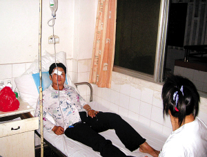 晚上8時(shí)許,記者走進(jìn)了中醫(yī)院的外科病房,除110室的一位女傷者仍在昏迷中外,其余4人均在二樓外科病房接受觀察治療。41歲的李雪×右眼逢了5針,她來(lái)自超竹鎮(zhèn),以踩三輪車(chē)載客為生。談起突如其來(lái)的一幕,她說(shuō)一時(shí)間覺(jué)得好像一部推土機(jī)向她推來(lái),以后就失去了知覺(jué)。