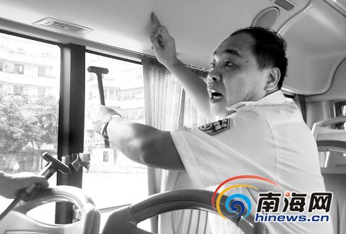 海口市運管處檢查組今天檢查了海口市公交公司旗下的多條公交線路,在檢查10路公交車時,車上配置的一個樣式簡單的救生錘引起了檢查組的注意。司機介紹說,該救生錘是公司自己訂做的,長度大約有30厘米,比原來車上配置的救生錘長一倍多,重量卻是原來的3倍多。“這種定做的救生錘樣式雖然比原來的丑陋,但卻更為實用”,司機表示。