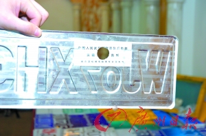 第二步:從溫州購買制假車輛號牌模具及半成品,按買家需求的車輛牌號和數(shù)量將半成品加工成假車輛號牌。