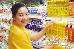 “你們消息真靈通。”記者的出現(xiàn),讓菜刀妹頗意外。她說(shuō),自己一直在各個(gè)商場(chǎng)輪流促銷,前兩天剛到茂業(yè)。“新飲料哦,歡迎品嘗……”一邊跟記者說(shuō)話,菜刀妹一邊忙著招呼客人,同時(shí),不時(shí)指導(dǎo)柜臺(tái)另兩名促銷員:“頭發(fā)快扎起來(lái),形象一定要干凈整潔,說(shuō)話要微笑……”