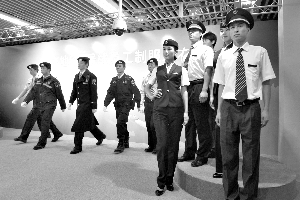 中式立領的白襯衫、深藍色馬夾和領口的桃紅色絲巾上下呼應,一個個高挑、俏麗的站務員穿上制服,逐一走出,好像一群空姐。京港地鐵公司昨日發布的員工制服分3大類,包括運營人員制服、維修人員工服、保安制服。