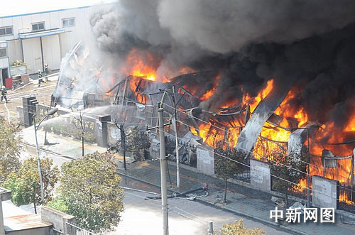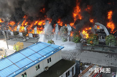 中新網(wǎng)溫州7月19日電(記者 江耘 通訊員 徐行號 姜嬋娟 劉榮平) 2009年7月19日10時55分許,浙江溫州龍灣區(qū)農(nóng)業(yè)開發(fā)區(qū)文匯路19號的愛好筆業(yè)倉庫發(fā)生火災。記者發(fā)稿時,大火已經(jīng)燒了7個小時,過火面積約達3000平方米,200余名消防官兵依舊無法徹底降伏火魔。