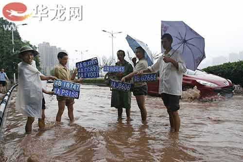 近兩天,山城重慶遭受了大暴雨襲擊,導致主城有些路段積水深達幾米,不少過往車輛猶如在江中行駛,造成一些車牌飄落于積水中。不少“撈客”卻從中發現了“商機”,他們將積水中撈出的車牌,在返還車主時,向他們索要100元的幸苦費。