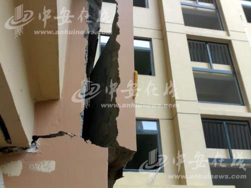 隨后,合肥市建筑工程質量安全監督站孫科長來到現場勘察情況。工作人員告訴記者,柱子出現開裂的情況主要有兩個原因,一是砌體在落實的過程中由于拉升的力作用導致出現裂縫。二是這四根柱子與其鏈接的墻體是由不同的建筑材料拼接,不同材料間應力不同也會導致開裂。