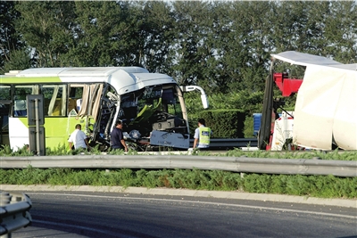 昨天下午5點左右,在京承高速黃港出口附近,一輛從懷柔駛來的916路公交車,與一輛運水貨車追尾,事故造成公交車上20多人受傷。