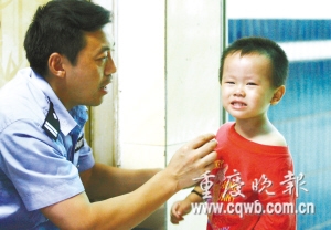 原來(lái)小男孩頭天迷路時(shí),民警問他叫什么名,他不說,于是大家就干脆給他起了個(gè)“渝碚路”的小名,不料只要民警們一叫這名,他就笑呵呵的答應(yīng)了,于是大家都習(xí)慣地叫他“渝碚路”。