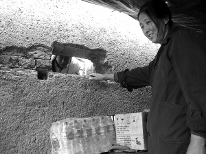 省實驗中學南側是一道高大的磚石院墻,但仍擋不住小攤食品。記者看到,院墻被掏開一個小洞,洞南邊是一個用帆布臨時搭建的小棚子,棚子里擺著飲料、香腸、方便面,女攤主正把幾瓶飲料順著洞遞給那邊的學生。僅10分鐘,女攤主便賣出了20多瓶飲料。