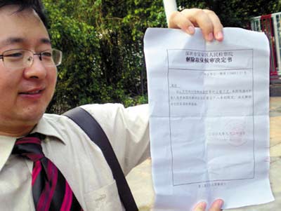 “檢察院沒有向梁麗提出公訴!眲⒔ㄈA對這個結果既覺喜出望外,又有點理所當然。他告訴記者,進入檢察院后,一名檢察官宣讀了案件的處理結果。他轉述了檢察官宣讀的文件:“梁麗,我院受理你涉嫌盜竊案,現已查明,因為證據不足盜竊罪名不成立。但我院認為你涉嫌侵占罪,因侵占罪屬自訴告知處理案件,我院無權處理,先把案件發回公安機關。檢察院”