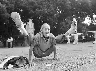 肖爹爹說,1982年離休后,身體每況愈下,還患上了肩周炎,便開始鍛煉身體。當年播出《射雕英雄傳》后,他就迷上了變幻莫測的蛤蟆功,—練就是27年,身體也日漸結實。 記者周超攝