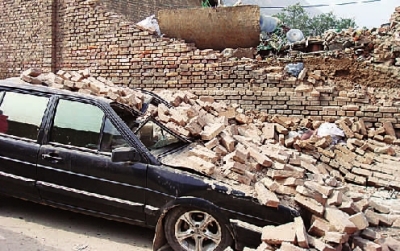 車主陳女士告訴記者,她和丈夫在附近居住,為方便外出辦公,他們前段時間買了一輛桑塔納轎車。由于周圍沒有停車場,無奈之下他們只好將車停在離家不遠的巷道里。20日上午,她和丈夫出門辦事,快走到車跟前時,只聽到“轟”的一聲,轎車旁邊的一堵高墻突然倒塌,砸在轎車上,大量磚塊瞬間將轎車“掩埋”。“每夭我都把車停在這里,沒想到今天這么倒霉,讓墻把車給砸了。”陳女士嘆氣道。