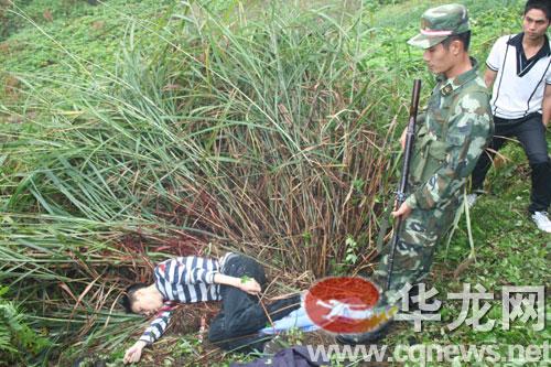 10月26日8點15分,沙區(qū)公安分局接警,在雙碑和平山發(fā)生了一起持刀傷人案。接報后,警方立即啟動突發(fā)事件處置預案,民警迅速趕到案發(fā)現(xiàn)場,發(fā)現(xiàn)中年婦女鄭某倒在血泊中,其腹部、胸部等多處中刀,已經(jīng)死亡。民警馬上對案發(fā)現(xiàn)場周邊展開搜捕,很快就鎖定了犯罪嫌疑人的蹤跡。此時,兇手殺人后,又綁架了一名年輕女子作為人質,正向和平山青草坡后山逃竄。警方當即成立現(xiàn)場指揮部,調集了刑警、武警等精干力量設卡堵截,上山搜捕犯罪嫌疑人。