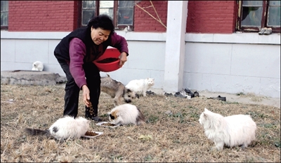 55歲的姜阿姨住在西城區甘家口一個社區內。姜阿姨在17年前撿到第一只貓,從此和貓結下不解之緣,不論在哪,只要看到有貓被遺棄,姜阿姨都會撿回來。家里養著78只貓,小區內養著13只貓。