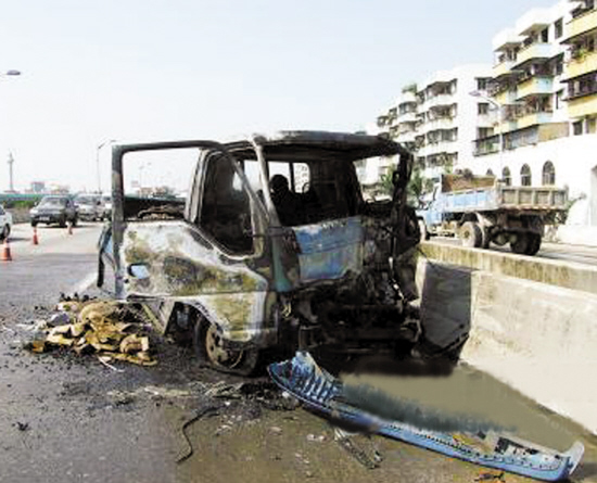 據警方人員說,他們接到報警趕到現場時,火勢很大,經消防車施救,大火10分鐘后被撲滅。據警方透露,出事小車屬江門市某五金制品公司,車牌號為粵JN21×。該車核載重量為1.75噸,出事時該車已涉嫌超載。(饒新一 李昕)