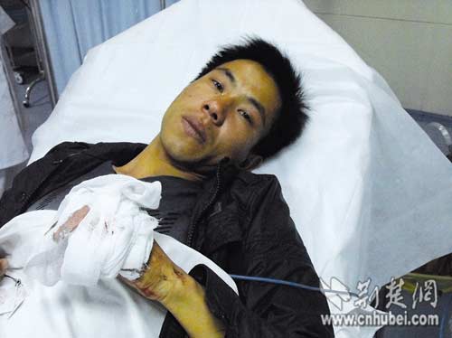 醫生經過了兩個多小時的手術,但覃櫞左手的小指還是沒接上。前日下午,25歲的洪湖小伙子覃櫞在武漢白沙洲海鮮大市場里剁掉小指,他說自己這樣做是為了證明清白。